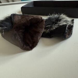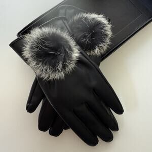 NIB Faux BlackLeather Gloves Faux Fur Pom Detail Mob Wife Aesthetic Women Size M