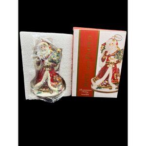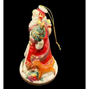NIB Fitz & Floyd Renaissance Holiday Dated 2017 Santa Bell Handcrafted Ceramic Ornament. This meticulously crafted Fitz & Floyd Santa bell ornament from the Renaissance Holiday collection is a timeless addition to festive decor. Its elegant design features Santa in a vibrant red robe, holding a bag of gifts with a charming holiday theme.