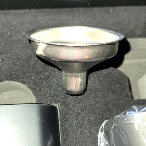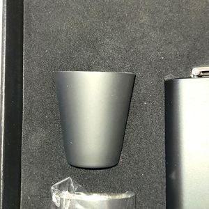 All items are plastic. 4 shot glasses. 1 funnel. Flas is 4" X 4".
