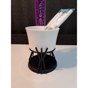 NIB Fondue Set Swissmar Kindle 6 Pc Forks White Ceramic Bowl Black Metal Stand