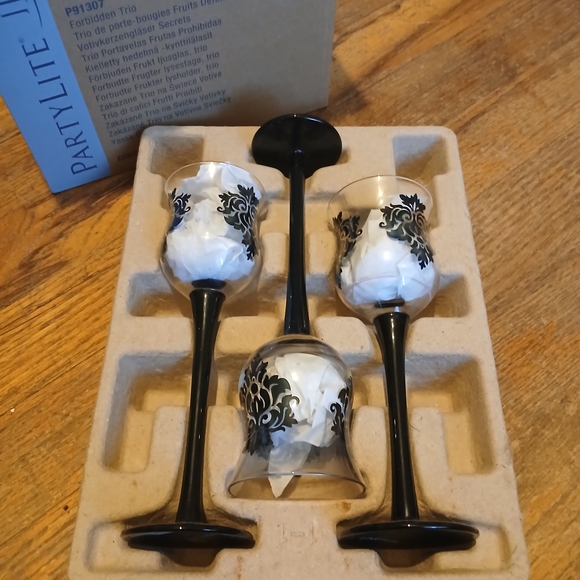 NIB Forbidden Trio Black And White Candle Holders By PartyLite
