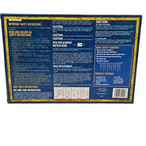 Indoor/Outdoor use, plug together 3 sets, lighted length 8 feet, total length 9 feet, 20 hanging strands, can add flashing effect, spare bulbs and fuses included, plugs at both ends.