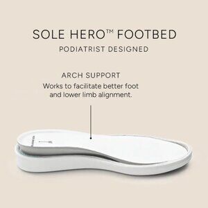 Sole Hero® Footbed. Podiatrist-designed with built-in heel, arch, and forefoot support.