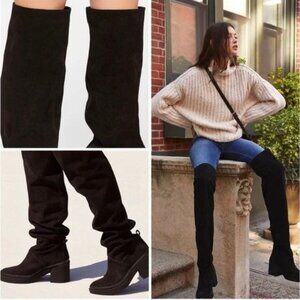 NIB Free People Black Suede Over The Knee Slouch Boots