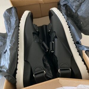 NIB Free People New Moon Velcro Black Leather Foodbed Sandals Sz 36