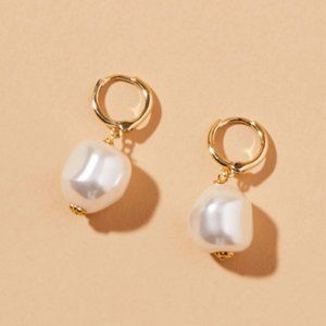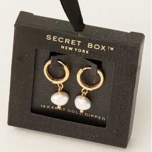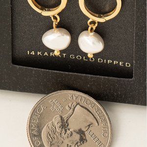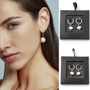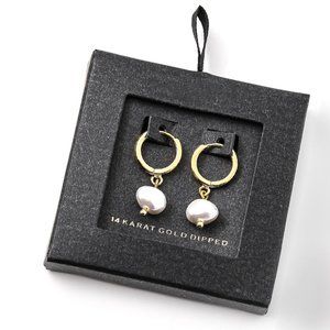 NIB Freshwater Pearl Drop Huggie Hoop Earrings (14k Gold/925 Sliver)