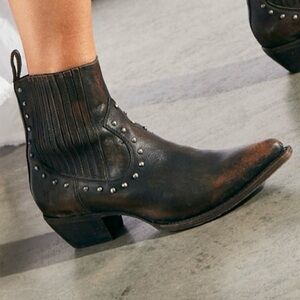Step out in these gorgeously-crafted classics, featured in a perfectly distressed chelsea silhouette with western-inspired detailing and studded embellishments for added dimension.
