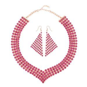 NIB Fuchsia Color Austrian Crystal Earrings and Princess Necklace in Rosetone