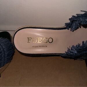 Get ready for summer with these gorgeous Fuego 'Brenda' wedge sandals, brand new in the box! ☀️ Featuring a wide navy blue vamp covered in playful, textured raffia fringe for a touch of boho flair. The classic espadrille wedge heel is wrapped in braided rope/jute, adding to the summery vibe. Expertly crafted and Made in Spain! 🇪🇸
