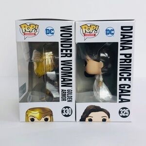 Brand new in box Funko Pop Wonder Woman WW84 Golden Armor and Diana Prince Gala 330 and 325. Walmart exclusive!