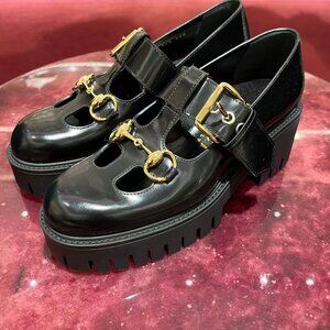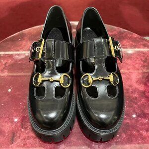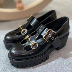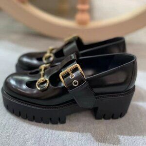 This loafer combines the Mary Jane style's buckle closure with an archival Horsebit hardware, resulting in a feminine yet laid-back design.