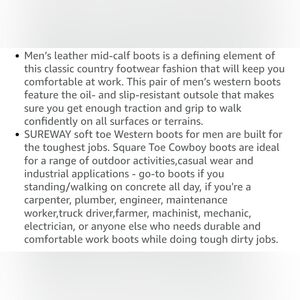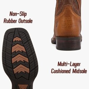 NIB Genuine Full Grain Leather Boots Mens 10 & 10.5 Square Toe Embroidery