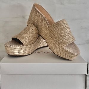 Brand New in Box, Never Worn Gibson Latimer Platform Wedge Shoes in Champagne/Natural Woven Jute - Material has a slight metallic accent (see pics)
