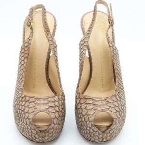 NIB Giuseppe Zanotti Slingback PLATFORM Heels PYTHON PRINT Leather 8.5 38.5