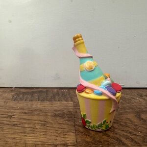 New in Box Glitterville Birthday Cake Topper Candle Holder 2" Fizz & Bubbles - Brand new in original box - Champagne Bottle in bucket with macaroons - Parisian Candle Holder - approximately 2" and holds a single candle
