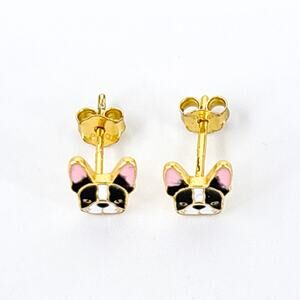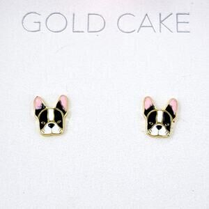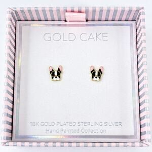 NIB Gold Cake Boston Terrier Gold-Tone Sterling Silver 925 Stud Earrings