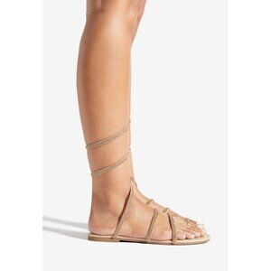 NIB Gold Gladiator Wrap Around Faux Suede Sandals