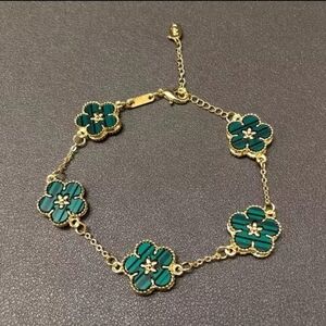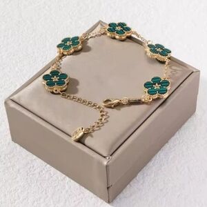 Gold plated five petal flowers white mother of pearl bracelet, 7" long with a 2" extender
