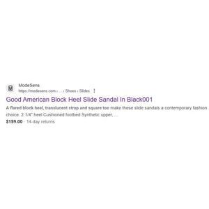 NIB! Good American Block Heel Slide Sandal in Black - Size 9.5