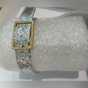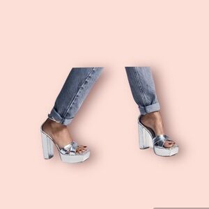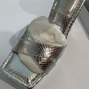 NIB Good American Silver Snake Embossed platform block heel sandal