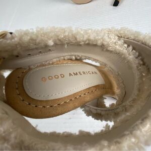 NIB Good American Women's Sherpa Ankle Strap Heels Size 7.5 Cream GA273F-X NEW