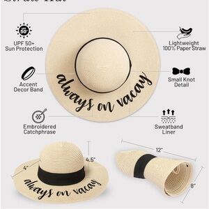 GREAT LOOK for all Ladies! Throw on this straw hat to instantly be the most stylish person around, no matter the occasion. Bold cursive lettering will showcase your current mood while you relax and soak up the sun. Perfect with super styled hair or messy beach waves, you simply can’t go wrong with this fashionable accessory. Effortlessly rock it with anything from a maxi dress to shorts, jeans to your favorite swimsuit.