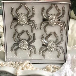 NIB! Gothic Halloween Rhinestone Spider Napkin Rings Set/4