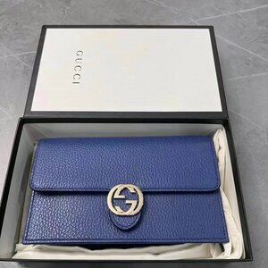 NIB Gucci Interlocking GG Wallet On Chain (18 Card Slot) Blue