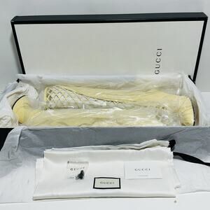 Authentic Gucci Ivory Leather Lattice Knee-High Boots, a stunning showcase of the brand’s craftsmanship and modern femininity. Crafted from smooth ivory leather, these boots feature Gucci’s distinctive lattice cut-out design, and sleek almond toe.