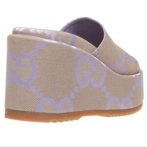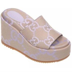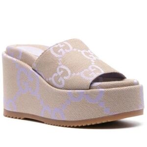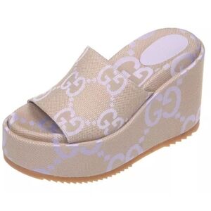 NIB Gucci Macro Jumbo GG Canvas Platform Wedges Sz37