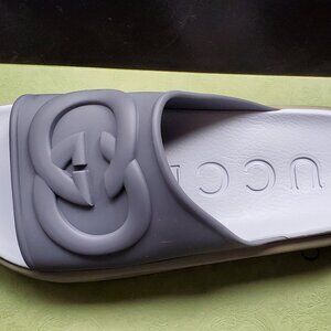 NIB Gucci Men's gray rubber platform slides sandals G 11 US 12
