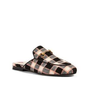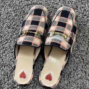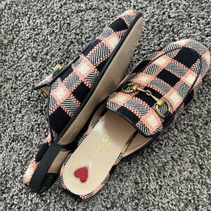 NIB Gucci Princetown Tweed Check Woven Mules In Pink
