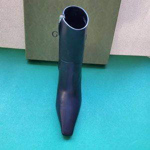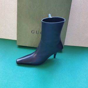 NIB Gucci black leather pointed-toe boots; Made in Italy