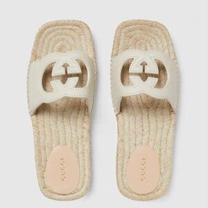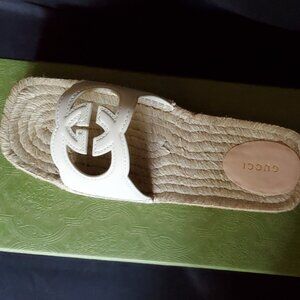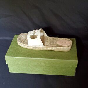 NIB Gucci cut out interlocking G logo espadrilles sandals ;