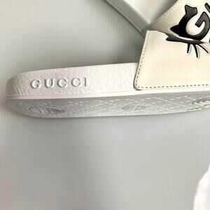 NIB Gucci logo-print open-toe slides Size 34