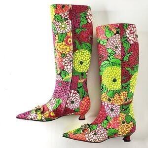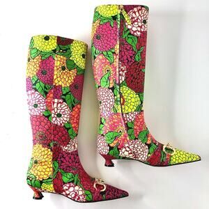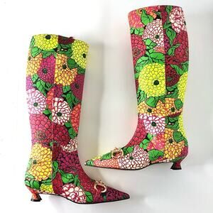 NIB Gucci x Ken Scott Horsebit Pomponica Knee High Floral Kitten Heel Boots 36