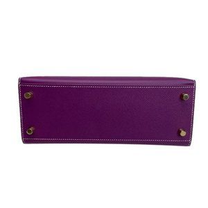 NIB HERMES HSS Kelly 25 Epsom SO "Anemone" & White "Blanc" Brushed Gold HW