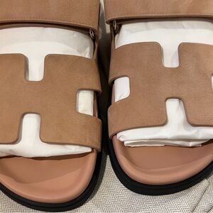 NIB HERMÈS Nude Suede Women’s Chypre Sandals Size 38EU w/Receipt Copy