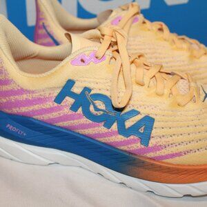 NIB HOKA WOMEN'S MACH 5 ATHLETIC RUNNING SNEAKERS ICYC ORANGE BLUE PINK