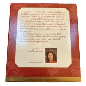 Vintage Hallmark Keepsake Barbie Ornament - Barbie as the Millennium Princess - part of the Barbie Christmas ornament series/collection - issued in 1999. NEW in the original box and packaging - box may show minor wear from storage - this ornament is a must have for the collector!