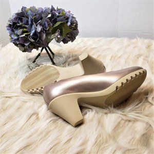 NIB Hogan Silver Leather Rubberized Heel Pump