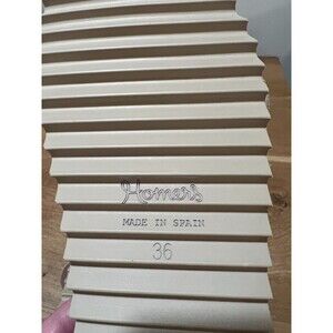 These Homers Tan Suede Slip On Open Toe Hand Crafted Buckle Slide Sandals in size 36 are a stylish and versatile addition to any woman's wardrobe. The solid tan color, slip-on closure, and classic design make them perfect for various occasions such as travel, parties, casual outings, christenings, and workwear. The handcrafted buckle accent adds a unique touch to the comfortable and durable sandals, which are ideal for the summer, fall, and spring seasons. Made in Spain, these sandals feature a cork outsole and leather insole, ensuring both quality and style.