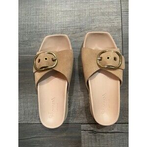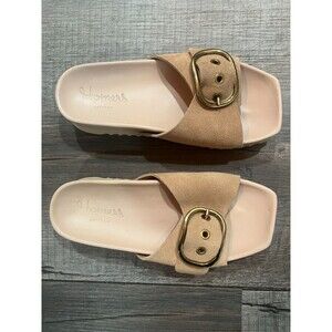 NIB Homers Tan Suede Slip On Open Toe Hand Crafted Buckle Slide Sandals Size 36
