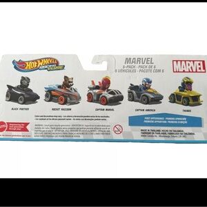 Hot Wheels RacerVerse™, Set of 5 Die-Cast Marvel Toy Cars Optimized for Hot Wheels® Track Performance with Popular Marvel Characters as Drivers, Gift for Kids & Collectors. Add some characters to Hot Wheels® car play with a Hot Wheels RacerVerse Marvel 5-Pack! Each of these toy vehicles features a non-removable legendary Marvel character figure in the driver's seat of a themed die-cast car that's optimized for performing on Hot Wheels® tracks. With five vehicles in the set, the competition starts right out of the box. Makes a great gift for collectors and kids 3 years old and older