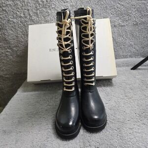 NIB Ilse Jacobsen Hornbaek Black Lace-Up Tall Rain Boots Fleece Lined EU 36