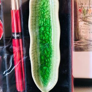 -- Leaf shaped ceramic incense holder with crushed glass inlay