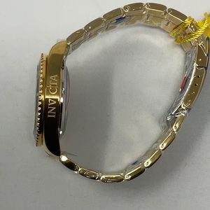 This NIB Invicta MLB watch features the New York Yankees logo and famous pinstripes on the 42 mm face, with a date window. The band is composed of a yellow gold tone full bracelet. Sapphire crystal, 200 meter water resistant. The automatic movement is self winding while wearing, so NO BATTERIES EVER!! Warranty card included, which you can register in your own name.