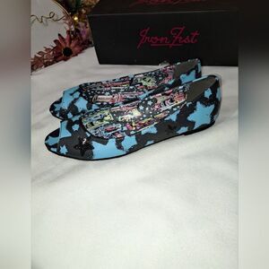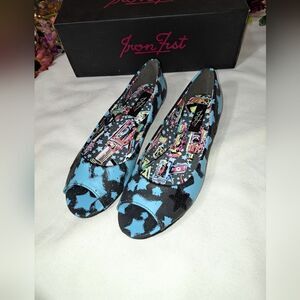 NIB Iron Fist Rayplay Peep Toe Flat Peep toe Blue and black