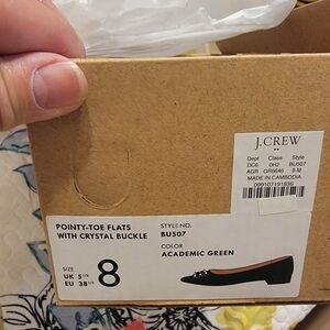 NIB J. Crew Satin Pointy Toe Flats with Crystal Embellished Buckle