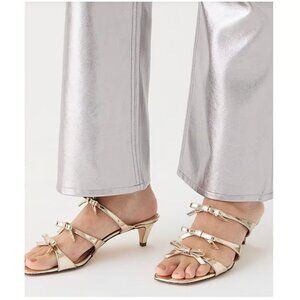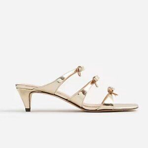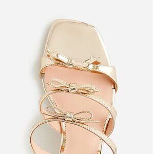 NIB J Crew Zadie Bow-Strap Heels in Gold Metallic Leather